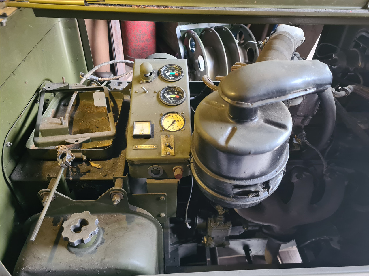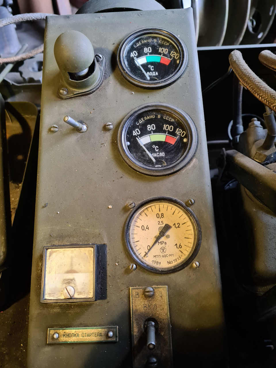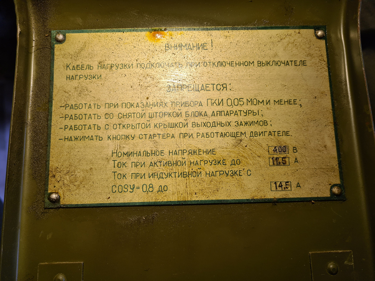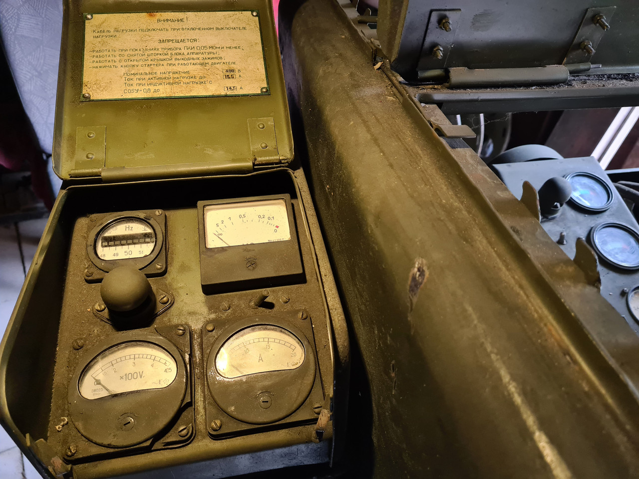 Источником электроэнергии является унифицированный бензэлектрический агрегат АБ-8-Т400М трехфазного переменного тока частотой в 50 Гц, напряжением в 400 В и мощностью в 8 квт. Агрегат состоит из бензинового двигателя типа «Москвич-408» мощностью 50 л. с, переоборудованного для установки на агрегате, синхронного генератора ГАБ-8-Т/400 мощностью в 8 квт, блока аппаратуры и приборов, которые смонтированы на общей раме и закрыты металлическим кожухом. На агрегате установлены два бензиновых бака емкостью 32 л., для более удобной заправки баков агрегата топливом, в станции произведена доработка системы питания агрегата. Заправка бака производится зла счет ручного насоса типа РНМ-1КУ2 прямо из бака емкостью в 105 литров. Для заправки топливом баков агрегата требуется нижний шланг насоса опустить в 105 л. бак, а верхний—в бак агрегата. При подкачке топлива не следует сильно нажимать рукоятку насоса. Частота качаний не должна превышать 60 в минуту. Слив воды агрегата осуществляется на грунт через шланги, расположенные под радиатором. Электроэнергия к потребителям по кабельной сети передается через щит распределительный прицепа при питании от агрегата и щит распределительный автомобиля при питании от стационарной сети. Номинальная мощность, квт – 8 Напряжение, В – 230 Род тока – переменный трехфазовый Частота, Гц – 50 Ток, А – 25 Двигатель, форсированный – Москвич 408 Частота вращения, об/мин – 3000 Генератор – ГАБ-8 Т/380 Емкость топливной системы, л – 20 Расход топлива, кг/ч при полной нагрузке – 5,2 Расход масла, кг/ч – 0,042 Топливо – бензин А-80 Габаритные размеры, мм: длина − 1400 − ширина − 1060 − высота − 750 Масса, кг – 440